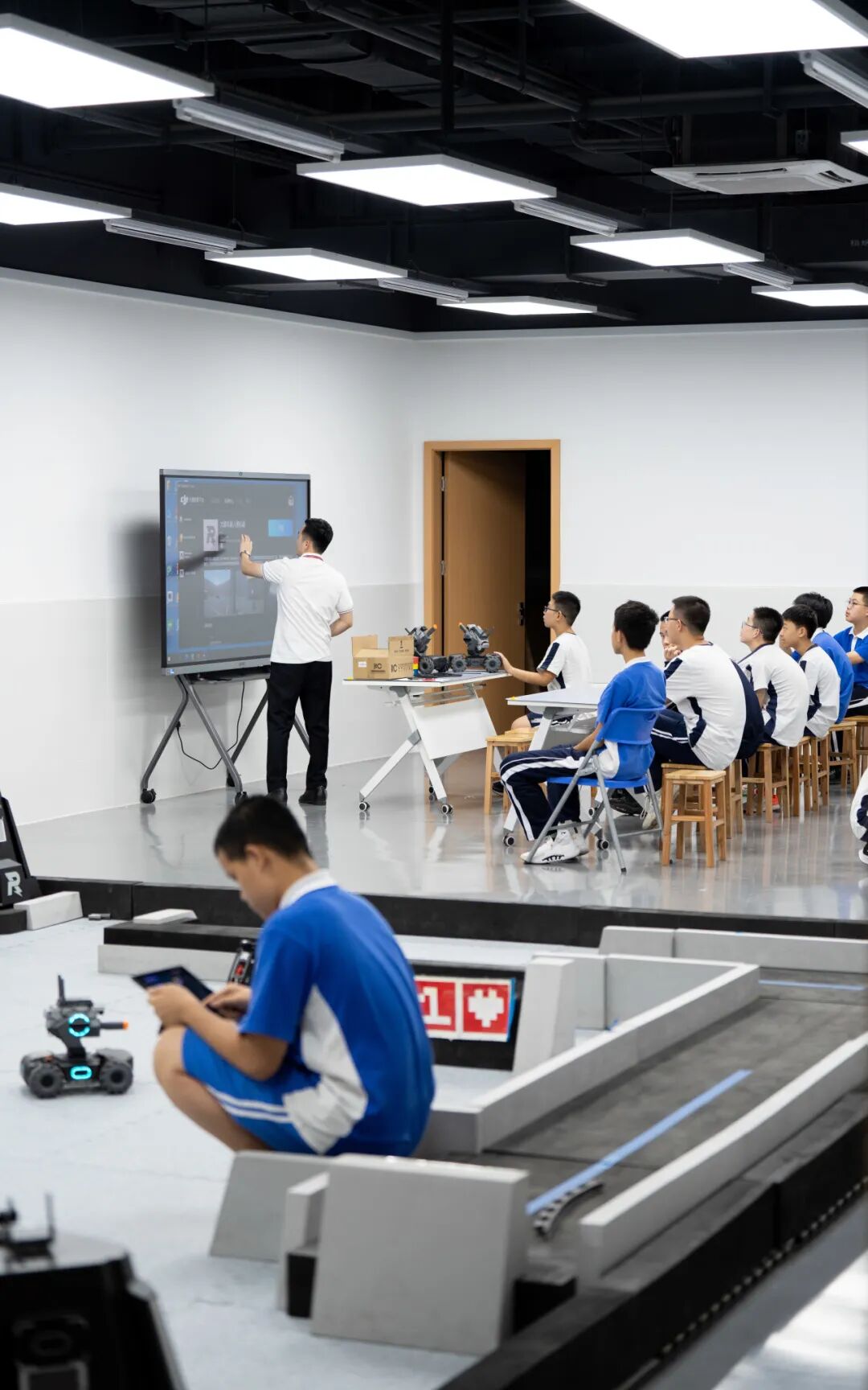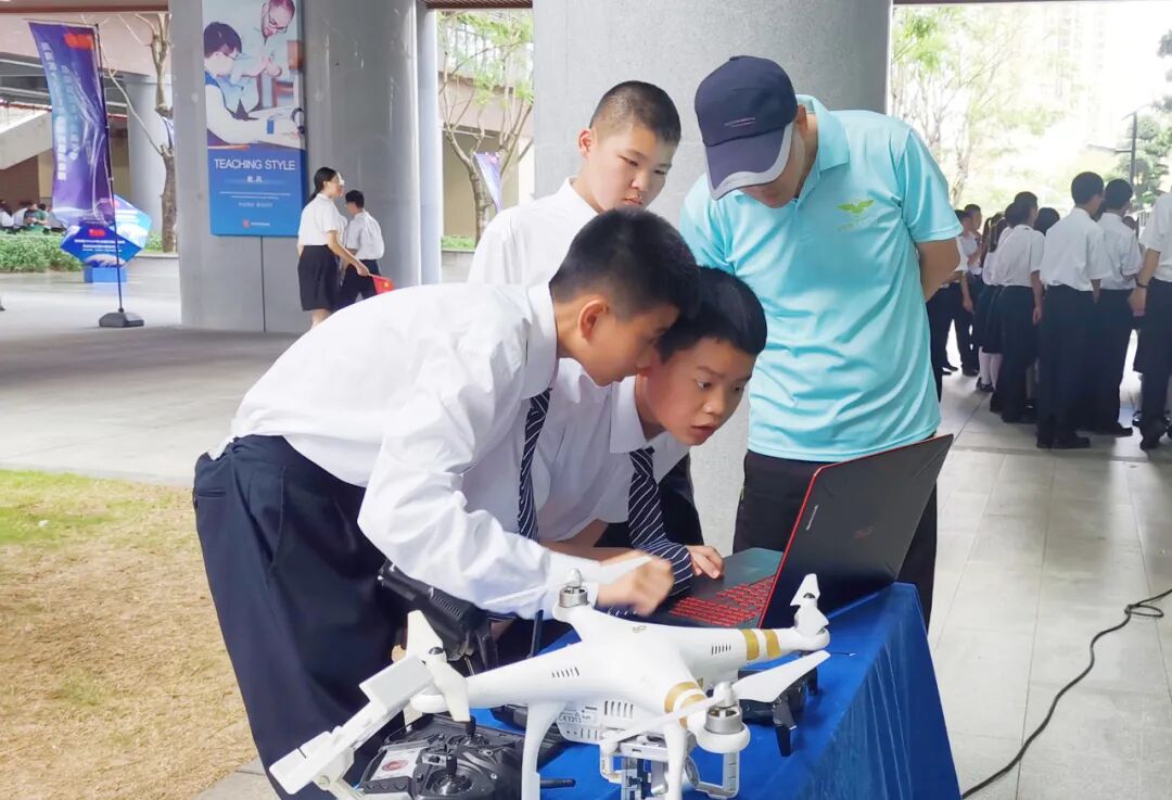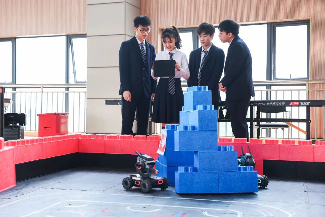 高中部还设有科创中心,引入大疆设备——机甲大师EP、S1,对应建立青少年对抗赛和征服赛场地;TT无人机和航拍无人机,对应建立TT无人机的迷宫赛道和障碍赛道场地。让学生体验前沿科学技术,锻炼和培养学生自主创新能力和科学思维,激发学生参与科学实践活动的兴趣。此外,还建立社团体系方案,每周开设“机器人与人工智能课程”、信息技术课程-Python课程、综合实践课程等,从学习图形化编程着手,锻炼学生的逻辑思维。
