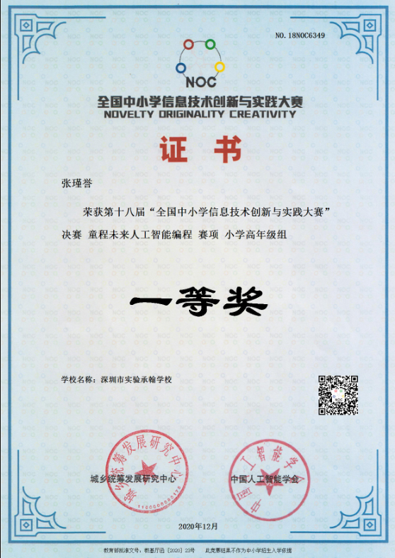 · 2022年NOC全国中小学信息技术创新与实践大赛中,承翰学子荣获3个一等奖、3个二等奖,1个优秀指导教师奖。