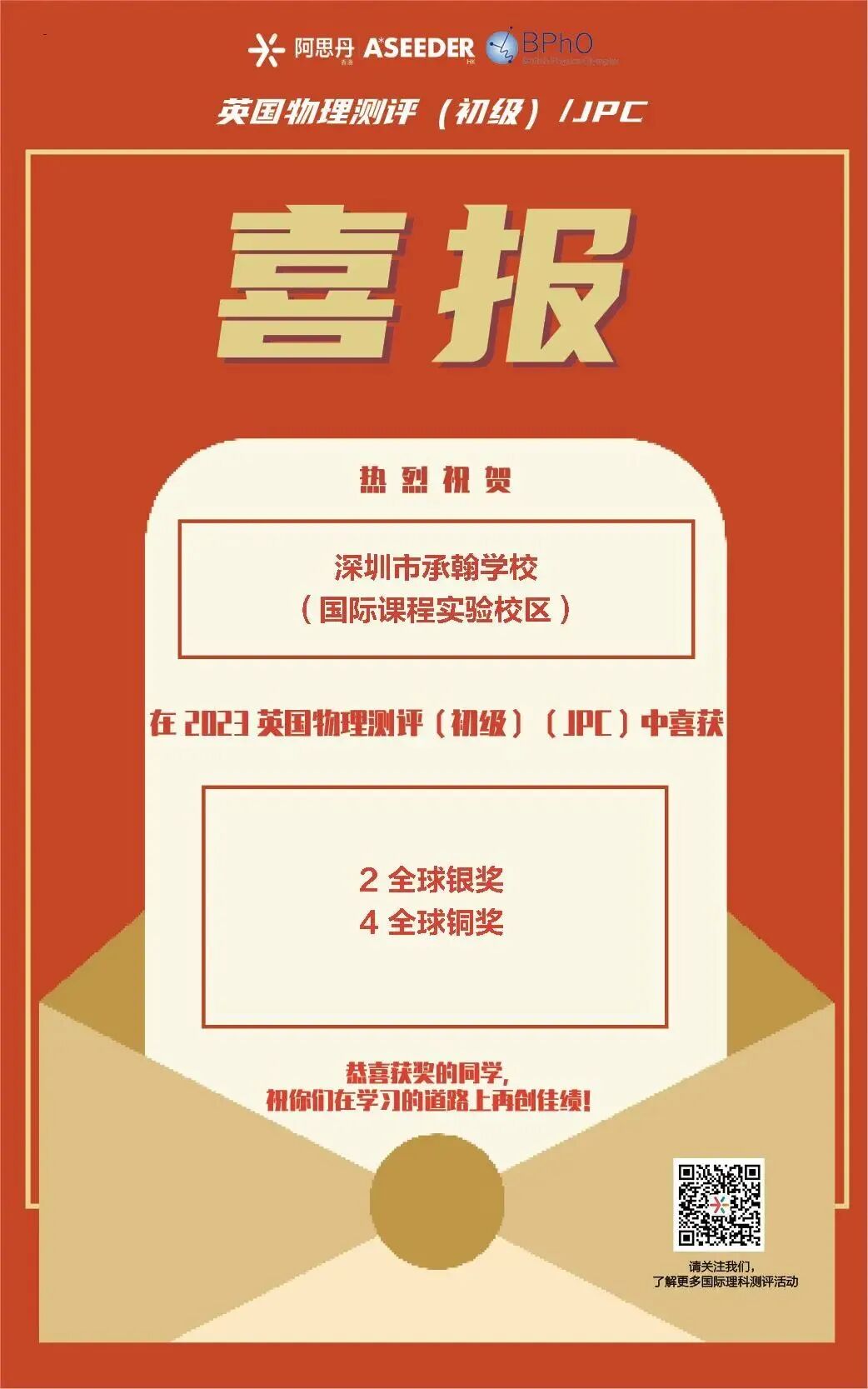 开学之初,承翰学校国际课程中心传来喜讯:在不久前举行的英国JPC物理测评中,承翰学子凭借扎实的学科知识、卓越的学习能力取得了骄人的成绩,共获2项全球银奖与4项全球铜奖。