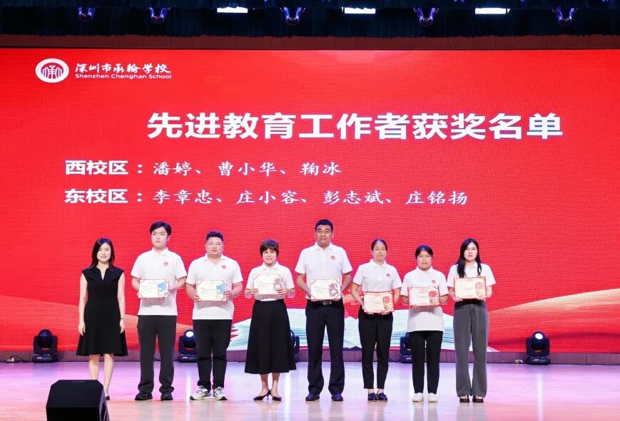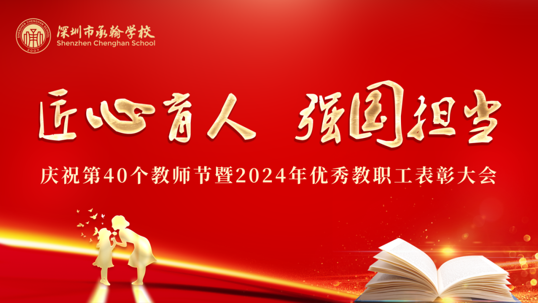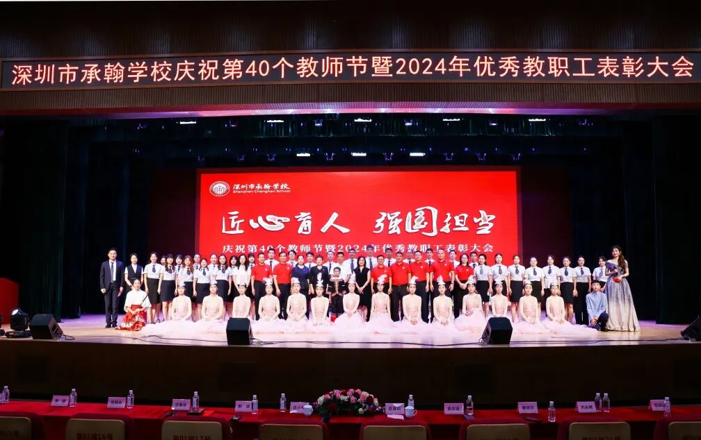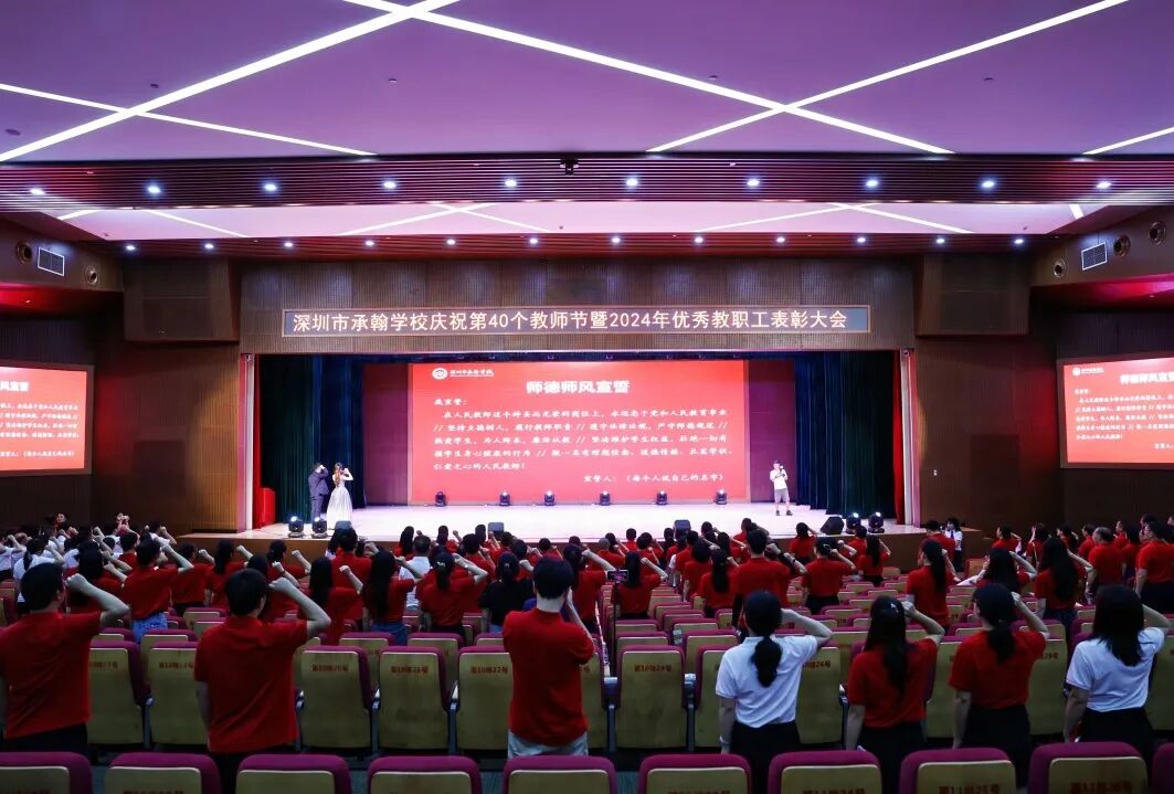 在“大力弘扬教育家精神,加快建设教育强国”的思想引领下,为进一步鼓励全校教职工扎根教育,敬业爱生,教书育人,9月9日,“匠心育人,强国担当”——深圳市承翰学校庆祝第40个教师节暨2024年优秀教职工表彰大会在承翰大剧院隆重举行。承翰集团董事长庄小夸、副总裁彭颖,承翰教育公司执行董事庄彦莉、总校长俞宗友,承翰学校党支部书记谈春华,承翰教育公司教育总监康晓华、副总经理何明丰,西校区执行校长李银、东校区执行校长刘永明及其他相关领导出席大会,与全体教职工共贺教师节。