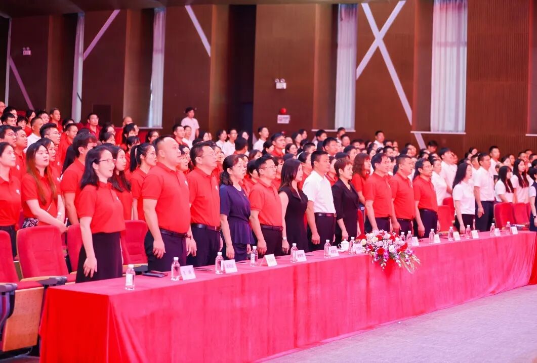 庆祝表彰大会在庄严的《国歌》奏唱中拉开序幕。